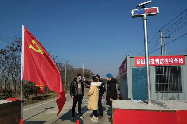 黨旗飄揚(yáng)在第一線。為了控制人員流動(dòng)量,在南京六合與新街鎮(zhèn)王店社區(qū)交接路口,設(shè)置疫情防控檢查站,樹(shù)立黨旗,鎮(zhèn)政府黨員志愿者與派出所、衛(wèi)生院工作人員組成分隊(duì),日夜堅(jiān)守在第一線。在這里,他們嚴(yán)格實(shí)施阻截措施,逢車(chē)必查,逢人必測(cè)體溫,對(duì)過(guò)往車(chē)輛、人員進(jìn)行衛(wèi)生防疫、信息登記工作,最大限度的減少輸入性病例,給疫情防控帶來(lái)了很大的幫助。
