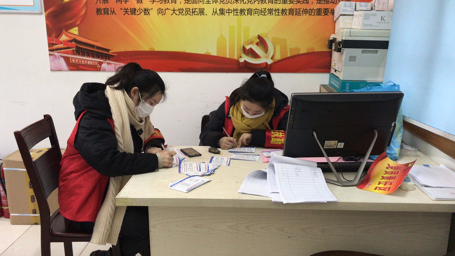 連日來大學(xué)生志愿者們和村干部并肩作戰(zhàn),入組到戶宣傳疫情防控知識,填寫發(fā)放整個(gè)社區(qū)的疫情防控網(wǎng)格化服務(wù)聯(lián)系卡。頂寒風(fēng),冒雨雪,日夜堅(jiān)守在各檢查點(diǎn),登記進(jìn)出人員信息,嚴(yán)格卡住每一道關(guān)卡。他們年齡雖小,做事卻十分“不留情面”:“叔叔!請看一下出入證!沒有出入證不可以出門!”凜冽寒風(fēng)中,成為長興社區(qū)一道青春靚麗的風(fēng)景線。