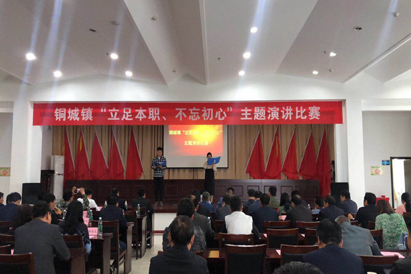 2020年5月10日銅城鎮召開“立足本職、不忘初心”主題演講比賽,高尚村黨總支書記戴梅生同志參加會議。
