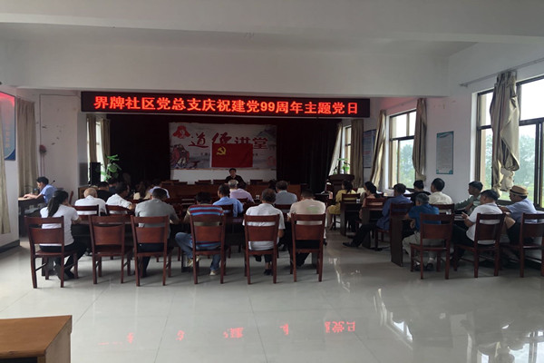7月1日,界牌社區(qū)黨總支召開“七一”黨員大會,慶祝建黨99周年主題黨日。