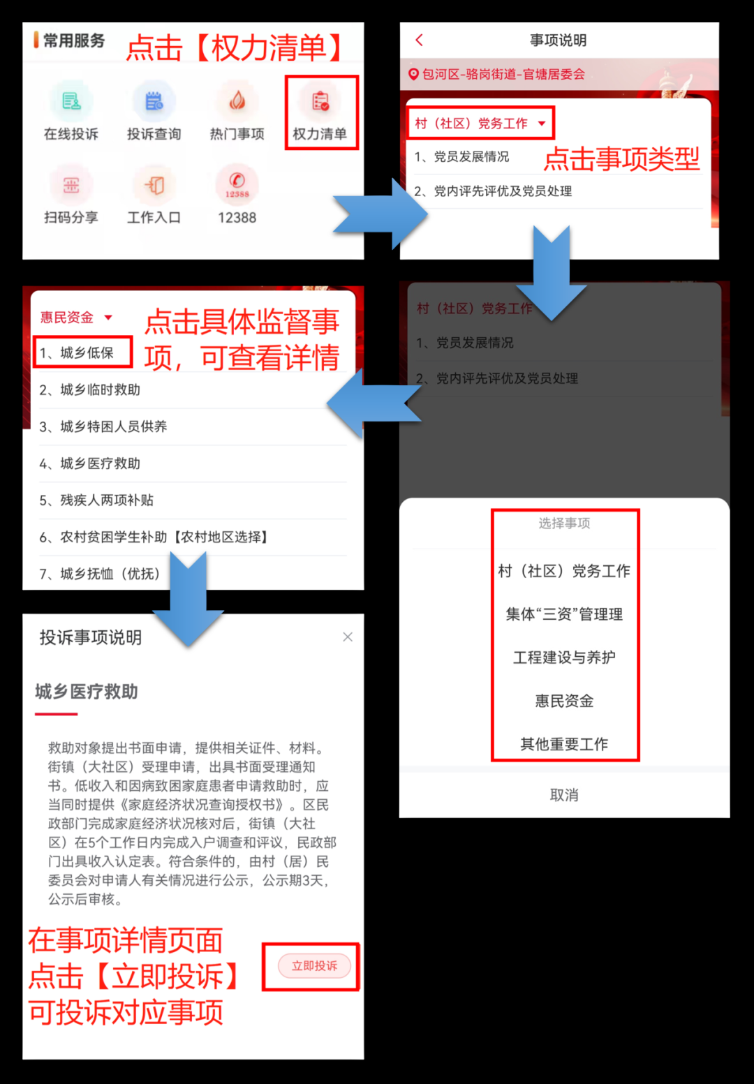 (2) 小微權力“監督一點通”服務平臺圍繞小微權力清單進行投訴反映,對不屬于小微權力清單范圍之內的其他問題暫不受理,您可以向“12345”市長熱線或其他渠道反映相關問題。