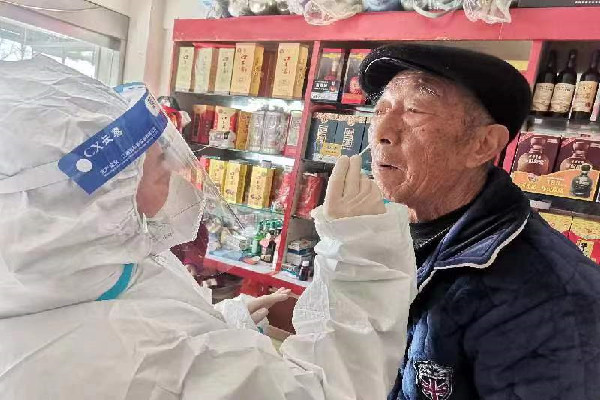 2023年1月9日,園林社區為轄區重點人群發放了抗原試劑。對于行動不便的老人,社區工作人員將抗原試劑送上門,并向老人動員接種新冠疫苗。