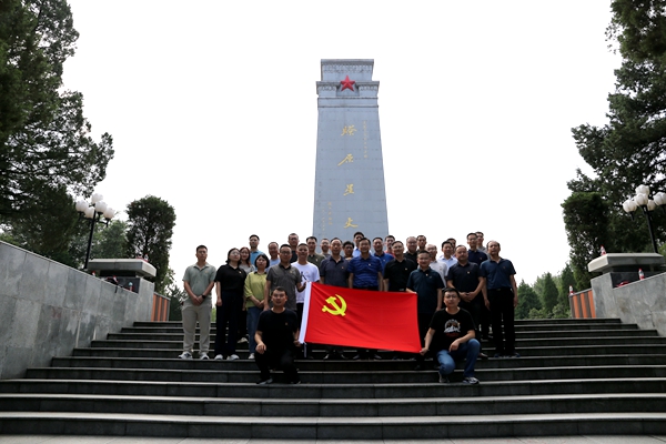 在金寨縣紅軍廣場,全體黨員莊嚴邁上寓意著在金寨誕生的59位開國將軍的59級臺階,瞻仰“星火燎原”革命烈士紀念塔,面對鮮紅的黨旗,重溫入黨誓詞,用鏗鏘有力的誓言表達對革命先輩的無限敬仰和深切緬懷。