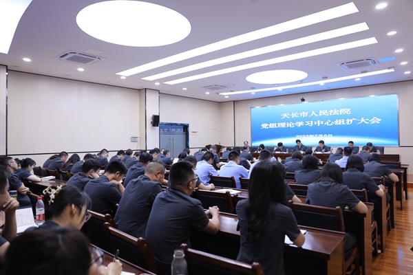 7月6日,天長法院召開黨組理論學習中心組擴大會,該院黨組書記、院長侯金鵬主持會議,全體在編干警參會。