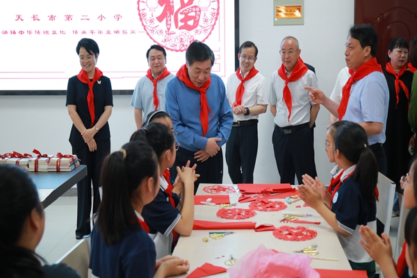 在市第二小學(xué),一進(jìn)校門,少先隊員便熱情地為賀家平一行系上了鮮艷的紅領(lǐng)巾。在老師們的帶領(lǐng)下,賀家平一行走進(jìn)少先隊員活動室、校體育館,實地查看學(xué)校特色課程、社團活動開展情況,并與孩子們親切打招呼,送上書本讀物等兒童節(jié)禮物,勉勵他們要珍惜美好時光,樹立遠(yuǎn)大理想,爭做德智體美勞全面發(fā)展的好少年。在詳細(xì)了解學(xué)校教育教學(xué)管理、文化建設(shè)及師生學(xué)習(xí)生活等情況后,賀家平指出,青少年是祖國的未來,各級各部門要把教育放在優(yōu)先發(fā)展位置,優(yōu)化資源配置,強化要素保障,用心用情用力辦好人民滿意的教育;廣大教育工作者要落實立德樹人根本任務(wù),堅守為黨育人、為國育才的初心使命,努力培養(yǎng)出更多熱愛祖國、陽光向上的新時代接班人。