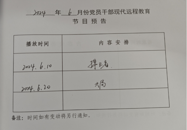 2024年6月黨員干部現代遠程教育播放計劃如上圖所示。
