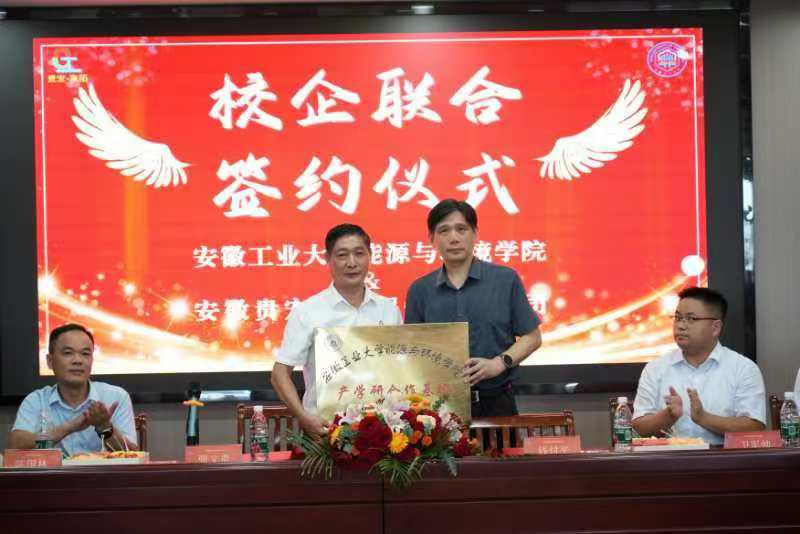 會上,貴宏鍋爐有限公司董事長李文貴與安徽工業(yè)大學能源與環(huán)境學院院長錢付平簽署了合作協(xié)議,并為產(chǎn)學研基地掛牌。