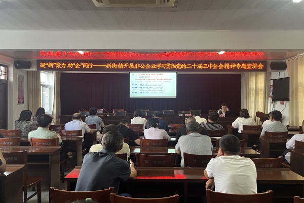 為深入學習貫徹黨的二十屆三中全會精神,推動興起學習宣傳貫徹全會精神的熱潮,確保黨的最新理論成果在非公企業落地生根,2024年9月19日上午,新街鎮召開“凝‘新’聚力,助‘企’同行”——非公企業學習貫徹黨的二十屆三中全會精神專題宣講會。