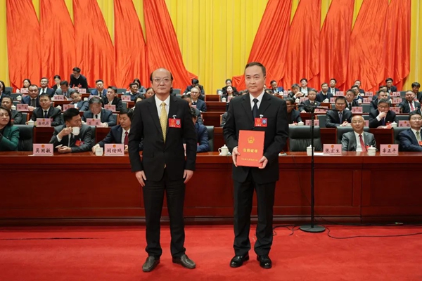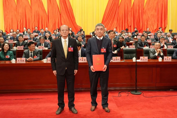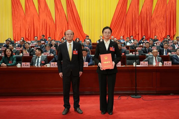 新當選的市人大專門委員會主任委員到主席臺前接受當選證書