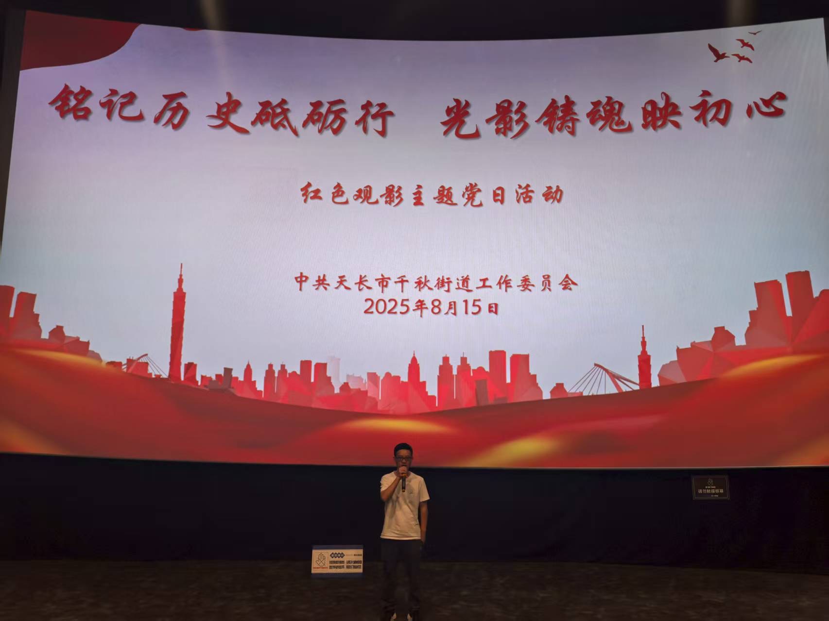 值此中國人民抗日戰爭暨世界反法西斯戰爭勝利80周年重要歷史時刻,為深切緬懷抗戰英烈,賡續偉大抗戰精神,千秋街道組織機關黨員、新發展預備黨員、非公企業黨員、新就業群體黨員、流動黨員、團員代表等,集體觀看紅色題材電影《南京照相館》,通過沉浸式觀影學習,重溫革命歷史、傳承紅色基因、凝聚奮進力量,強化使命擔當。